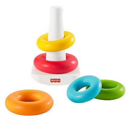 סוף סוף… הטבעת שתעלה על כולם. צעצוע מגדל טבעות של פישר-פרייס עשוי מחומרים על בסיס צמחי* מציע כיף קלאסי לתינוקות.