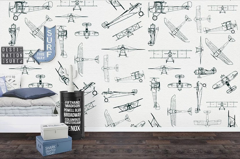 טפט מעוצב לחדר ילדים עם דבק במידה 65/300 ס"מ - מטוסים Marvadim