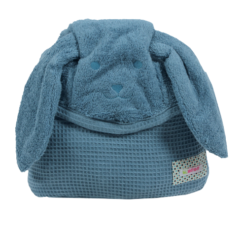 מגבת חיבוקי - מגבת רחצה לתינוק עם קפוצ'ון ואוזניים 100% כותנה - כחול ג'ינס מיננה