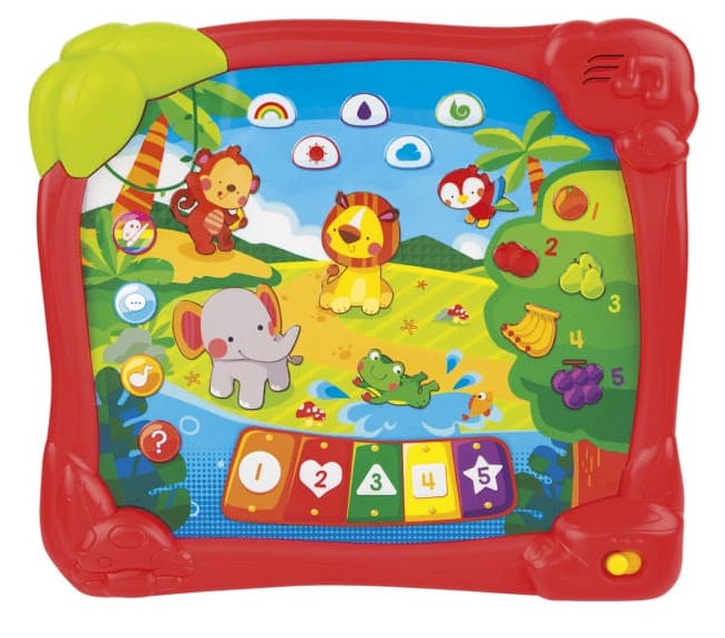 כאשר הפעוט משחק עם הלוח הוא לומג על מגוון צבעים, קולות של בעלי חיים ועוד.