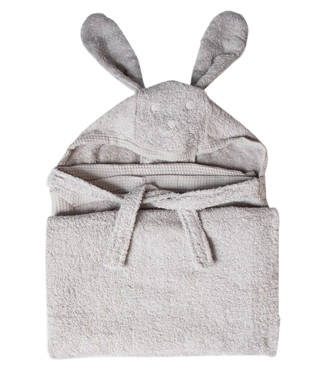 מגבת חיבוקי - מגבת רחצה לתינוק עם קפוצ'ון ואוזניים 100% כותנה - אפור בהיר מיננה
