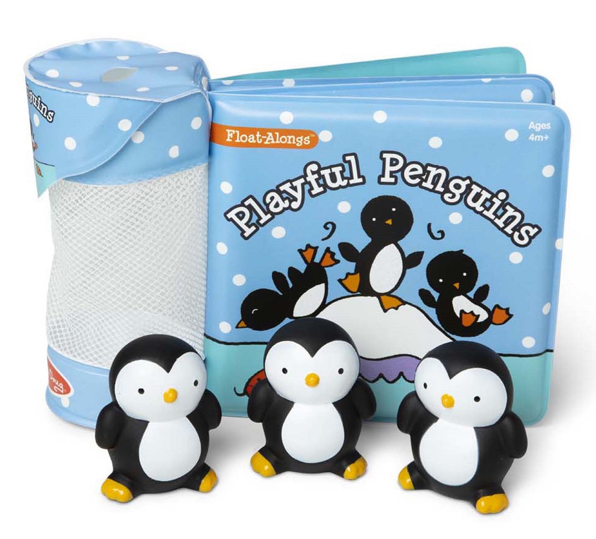 ספר אמבטיה 4 עמודים עם 3 צעצועי אמבטיה ותא אכסון - פינגווינים מליסה ודאג