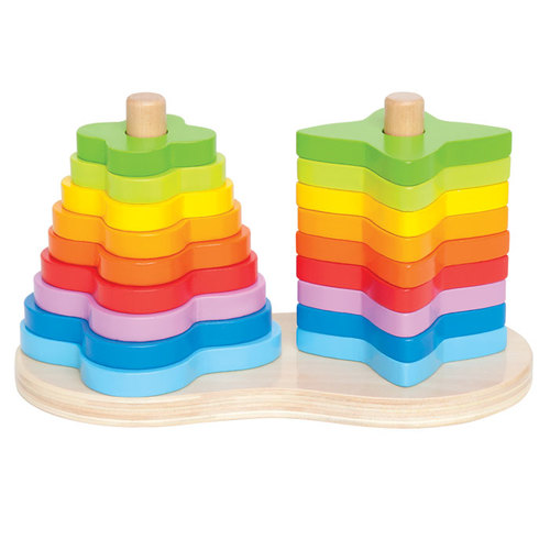 משחק השחלת צורות כפול מעץ - קשת הצבעים Hape