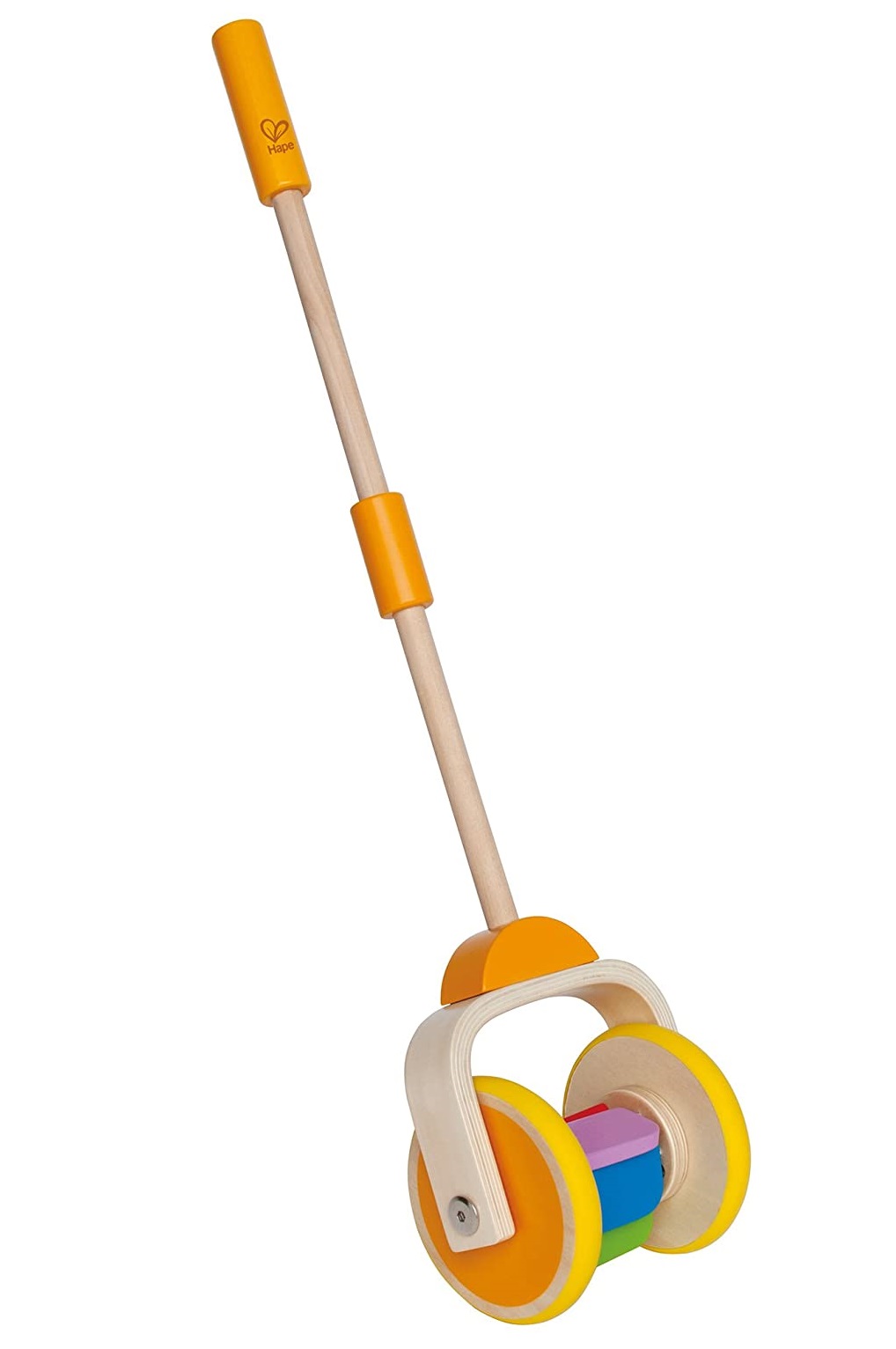 משחק דחיפה מעודד הליכה עם גלגלים שקטים מעץ - קשת הצבעים Hape