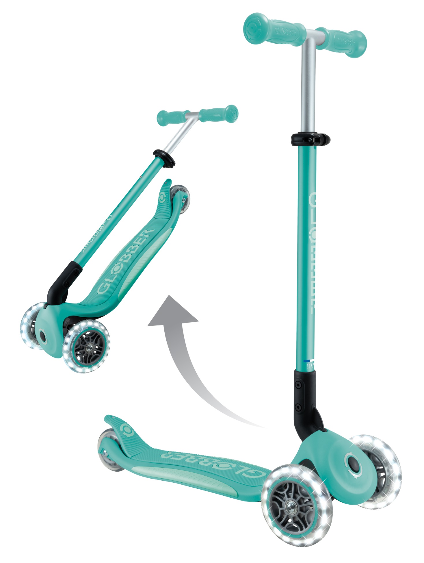 קורקינט מתקפל לילדים פרימו פלוס לייטס עם אורות בגלגלים וידית 4 גבהים - מנטה גלובר