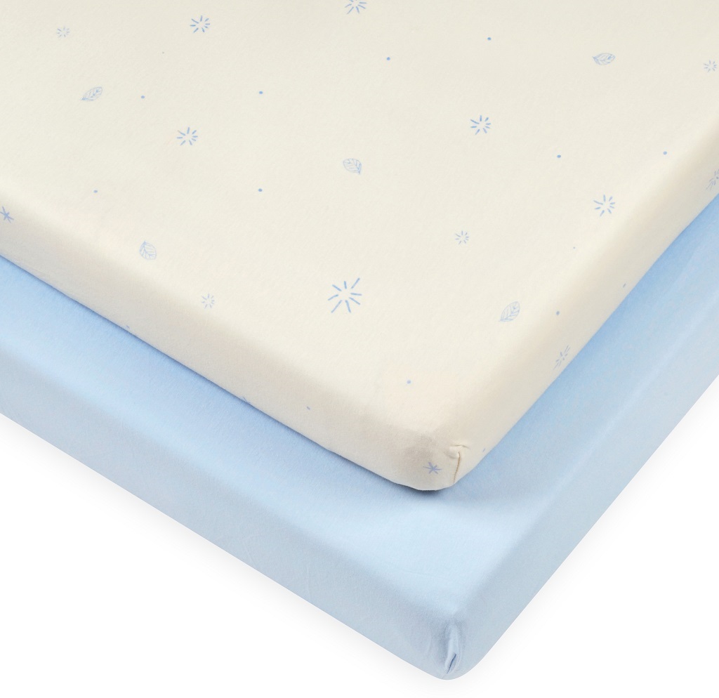 זוג סדינים ללול תינוק 100% כותנה טריקו - תכלת חלק/בז' עלים לורה סוויסרה