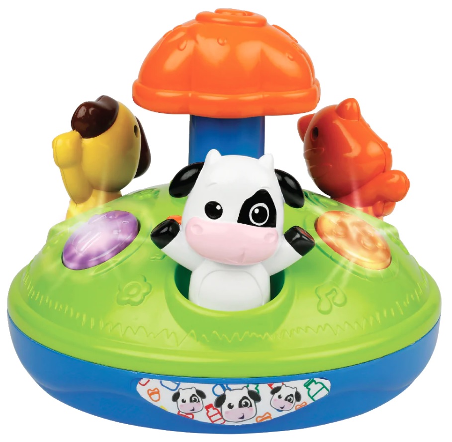 כאשר התינוק לוחץ על דמות נשמעות מנגינות מהנות והקרוסלה מאירה באורות מהבהבים