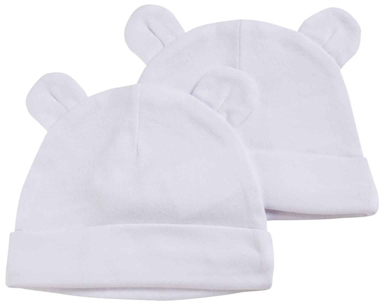 זוג כובעים לתינוק עם אוזניים 100% כותנה - לבן לורנס