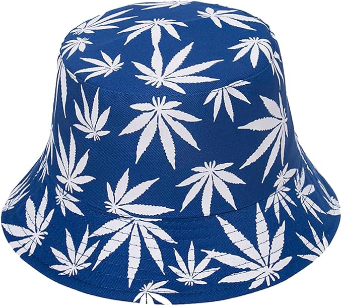 כובע טמבל כותנה עם ציור עלה כחול לבן שי פופ