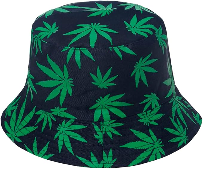 כובע טמבל כותנה עם ציור עלה שחור ירוק שי פופ
