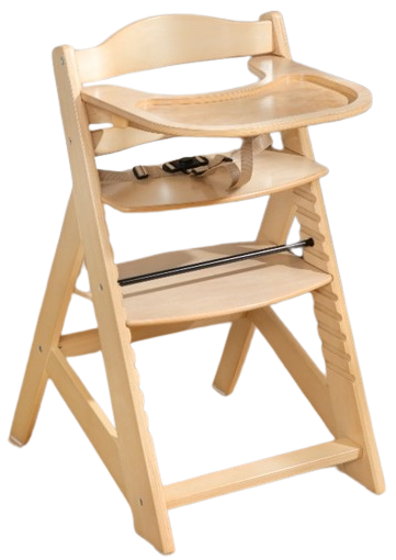 כיסא אוכל רב שלבי Modular עשוי עץ מלא עם מגש ורתמות - עץ טבעי + סט מגש פלסטיק פנימי וריפוד לכיסא אוכל מודולר =