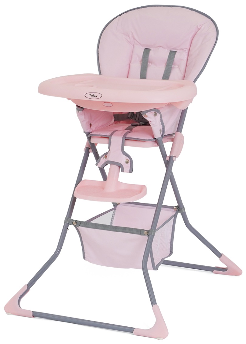 כסא אוכל גבוה עם מגש ניתן להסרה וריפוד קל לניקוי דינר טיים - ורוד Twigy