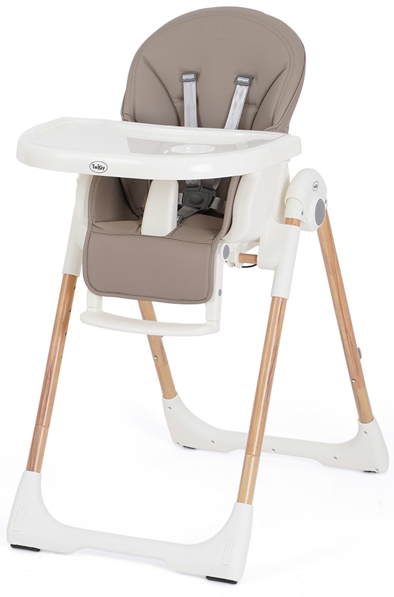 כסא אוכל לילדים Delicious בריפוד דמוי עור ומסגרת דמוי עץ, מצבי שכיבה וגובה - מוקה Twigy
