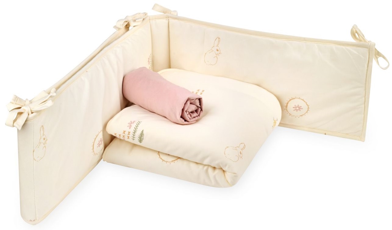 סט מצעים 3 חלקים למיטת תינוק מבד 100% כותנה - ארנב לורה סוויסרה