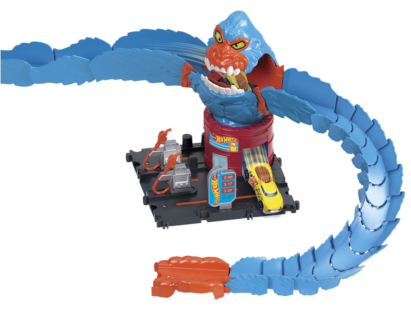 דמיינו גורילה ענקית בשם גארי שמשתלטת על תחנת הדלק של Hot Wheels City, מוכנה לזלול את מכוניות ההוט וילס שלכם!