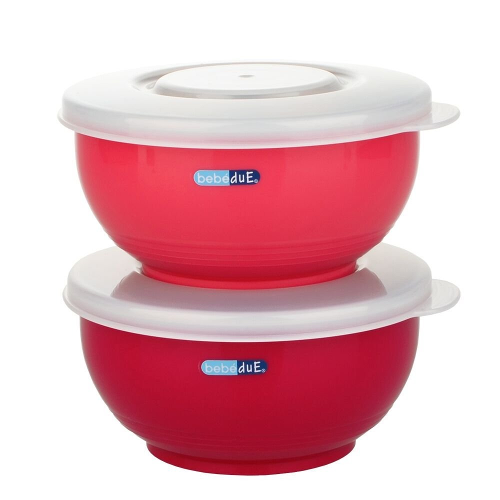 זוג קערות נירוסטה 250 מ"ל עם מכסים bebe due