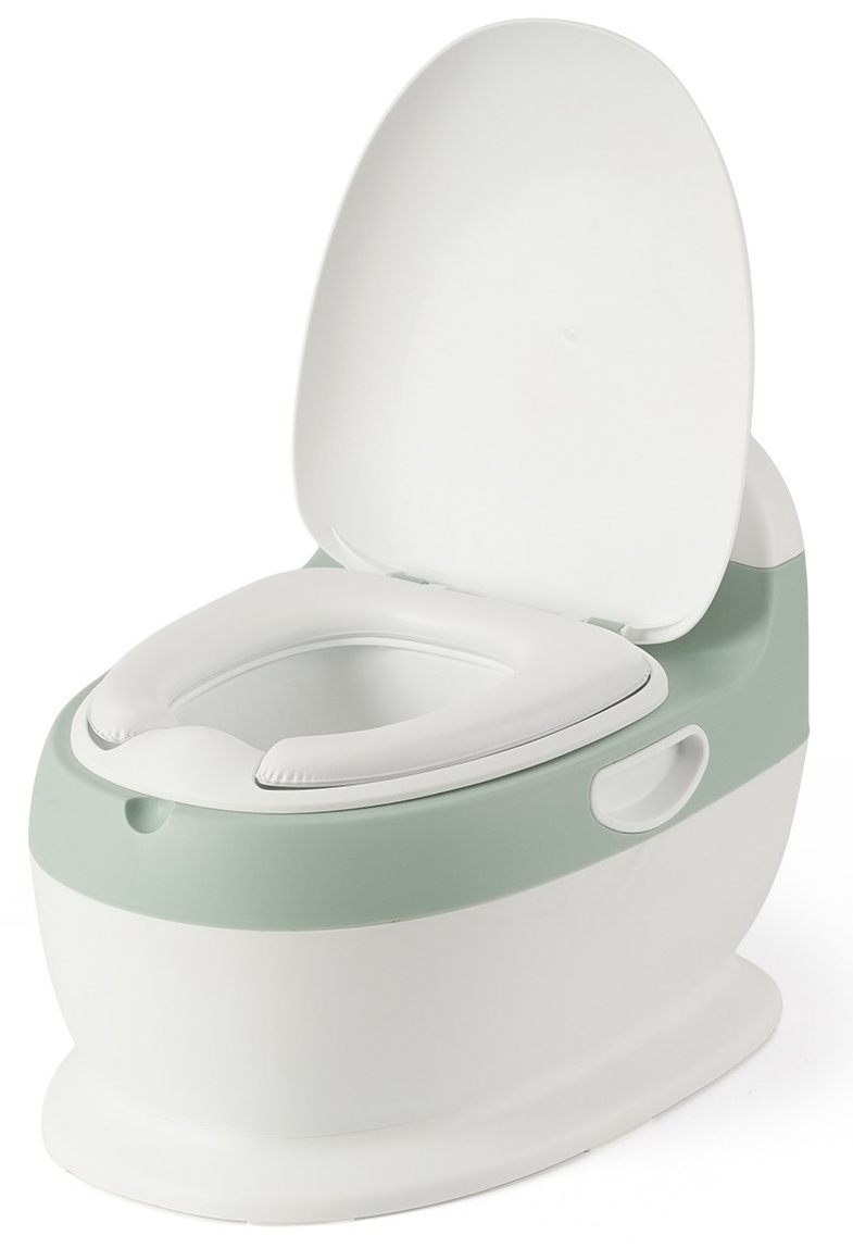 סיר גמילה אנטומי בצורת אסלה עם ריפוד ואפקט של הורדת מים - ירוק Twigy