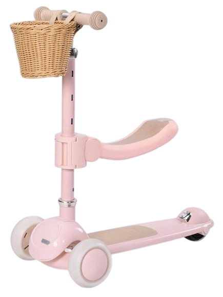קורקינט וינטג' 2 ב-1 עם מושב מתנתק וסלסלת קש Retro Line - ורוד Twist
