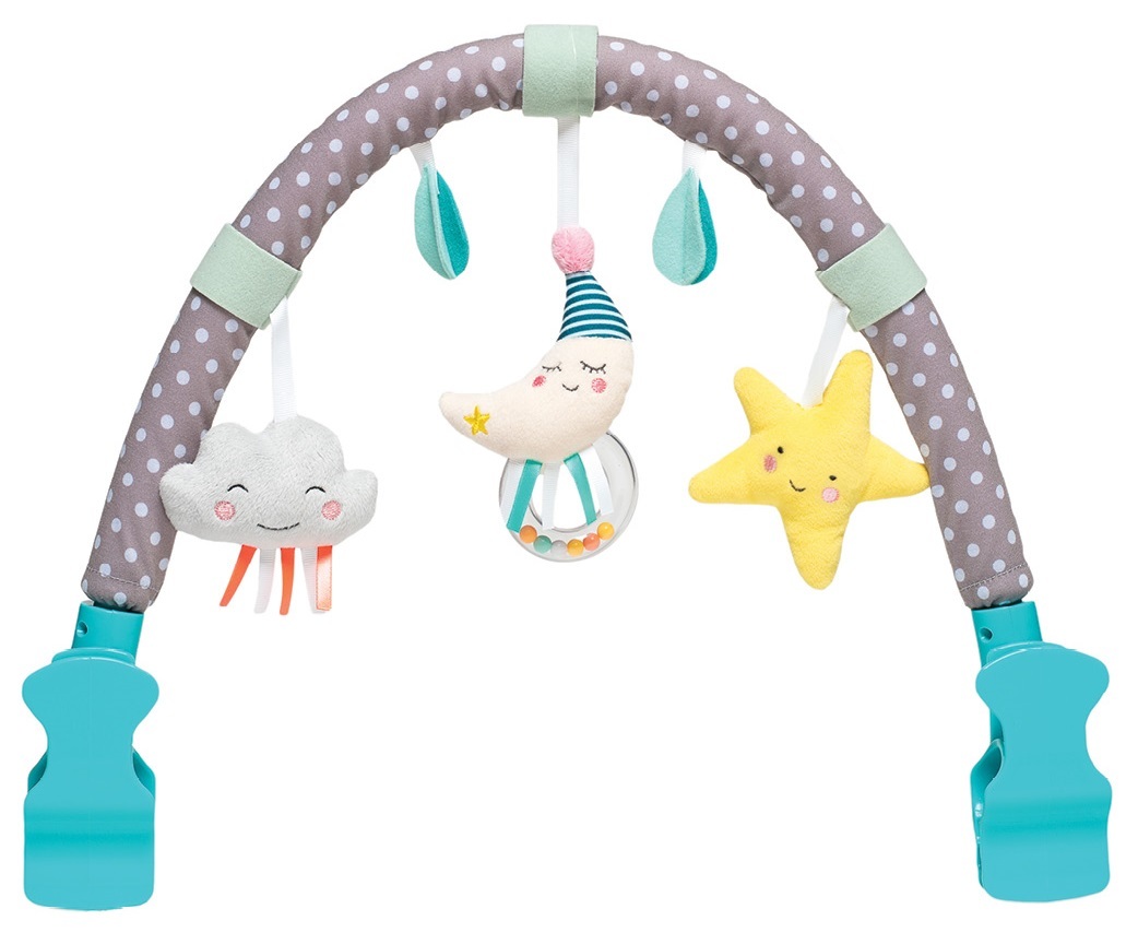 קשת אלסטית עם 3 בובות ירח / ענן / כוכב, הקשת מתאימה לעגלת תינוק בשלב הסל שכיבה (אמבטיה) או טיולון.