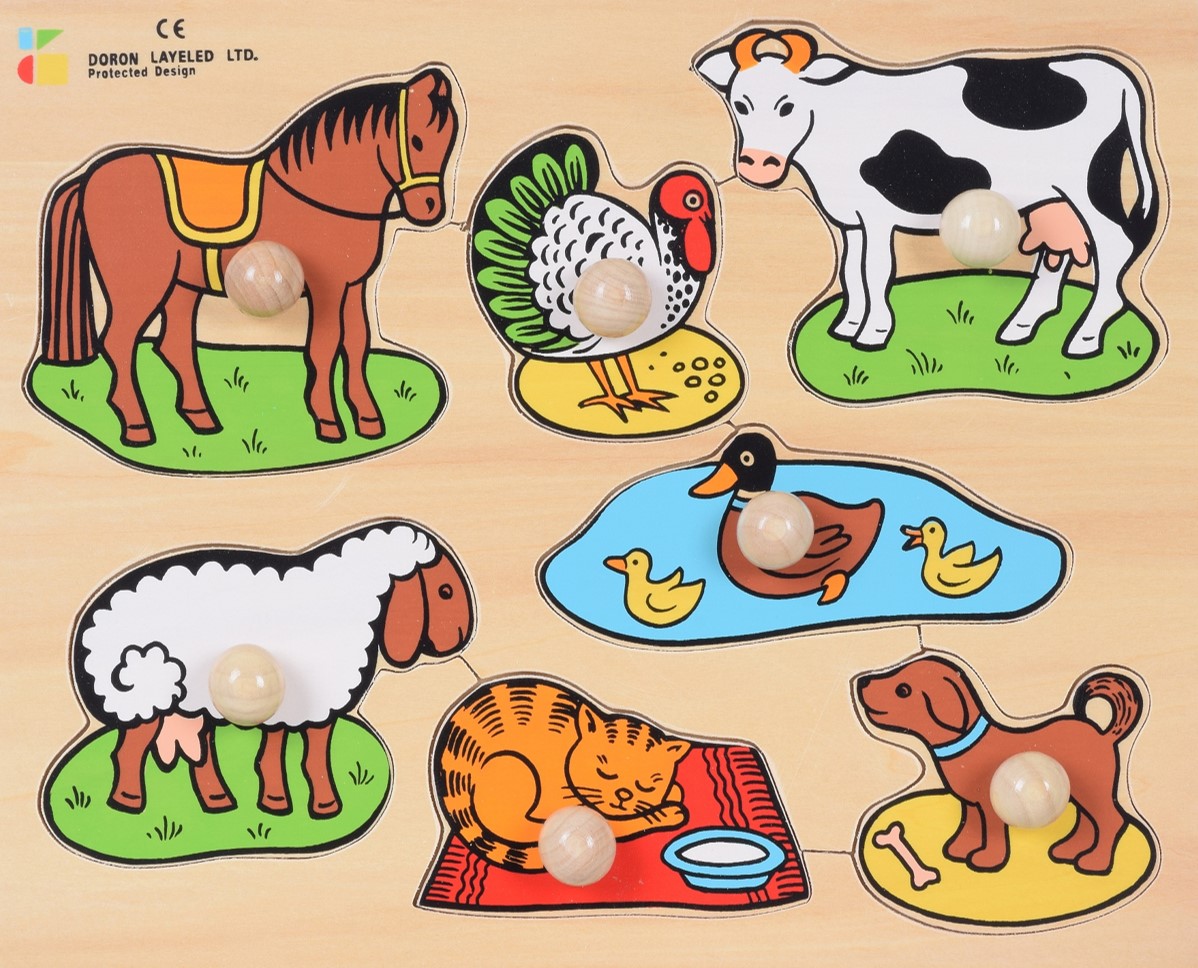 פאזל כפתורי עץ - חיות הבית דורון לילד