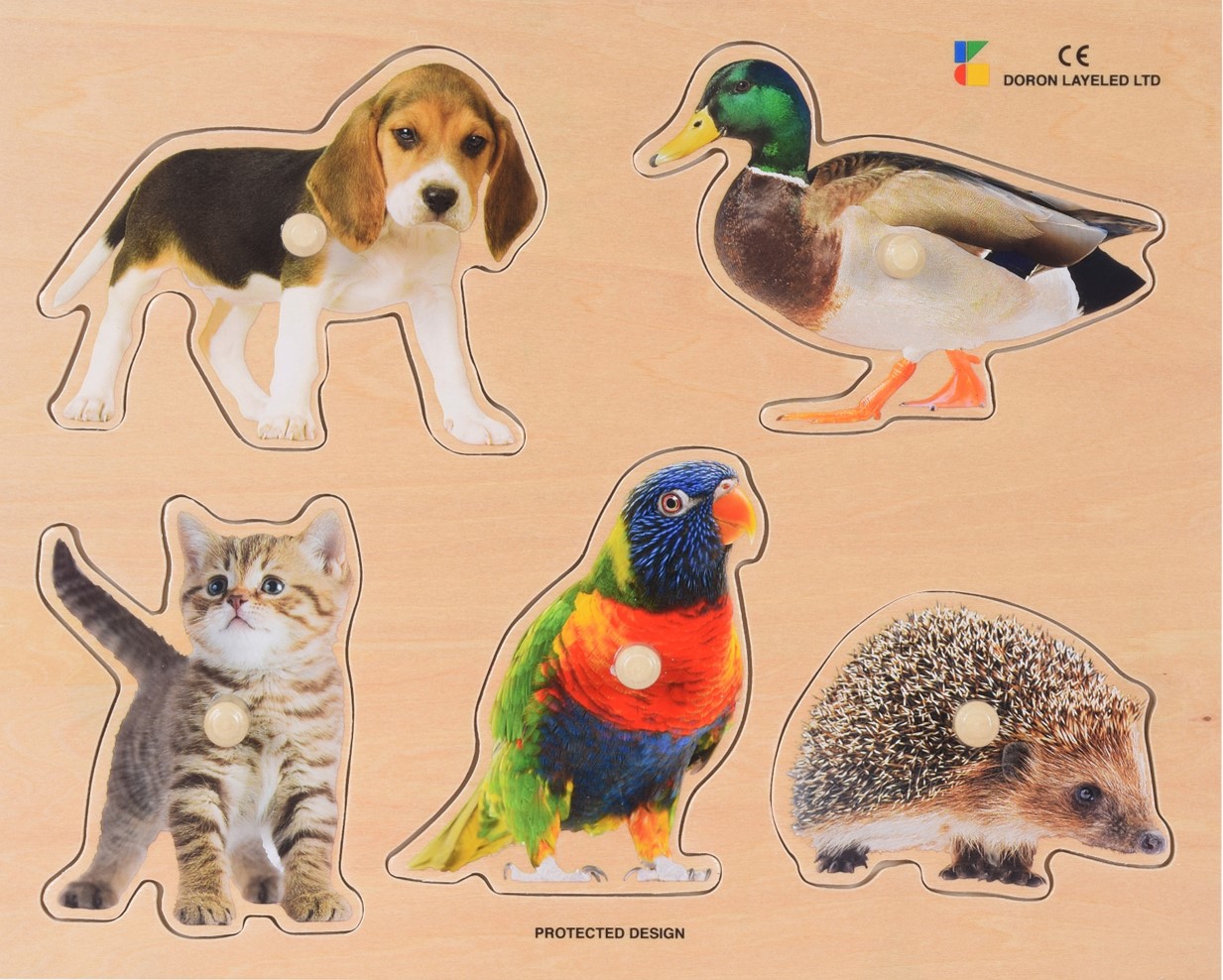 פאזל כפתורי עץ - חיות מחמד דורון לילד