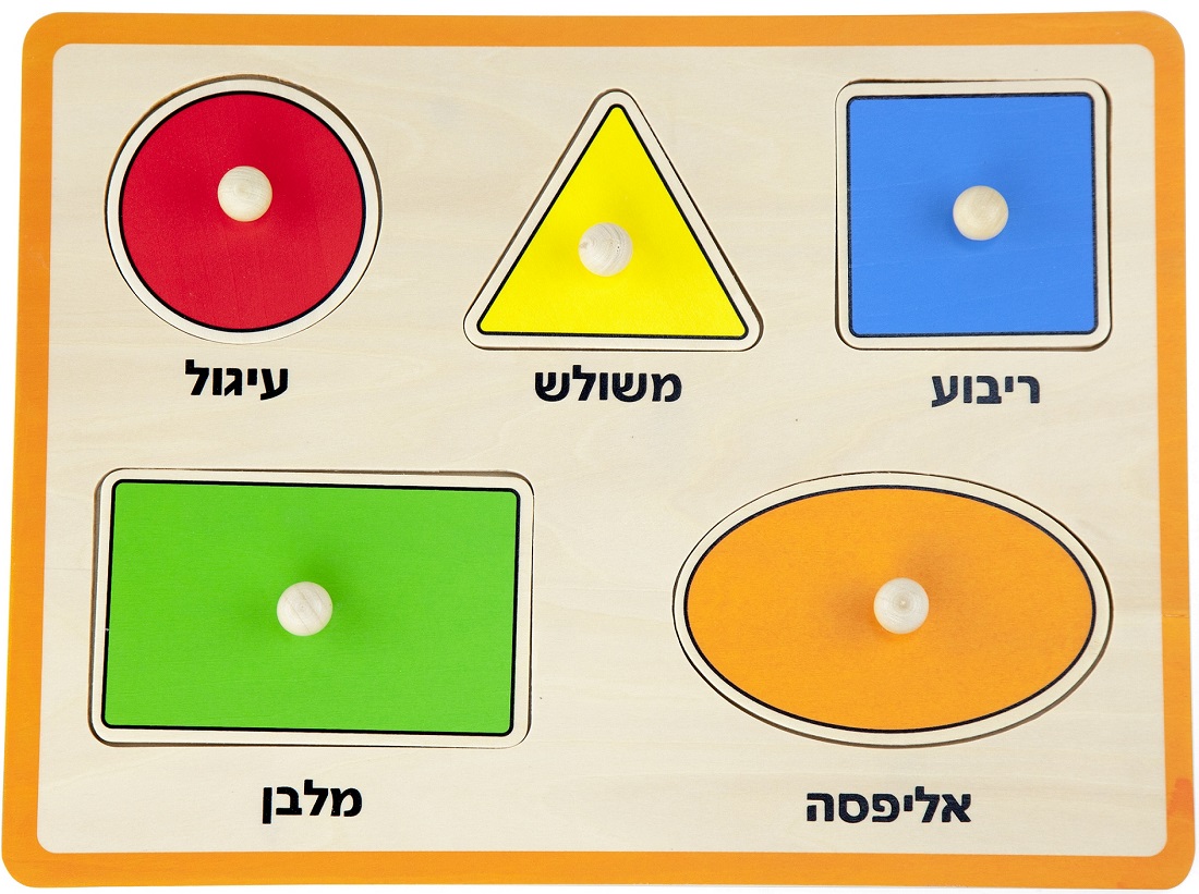 פאזל כפתורי עץ - צורות (כיתוב בעברית) ויגה