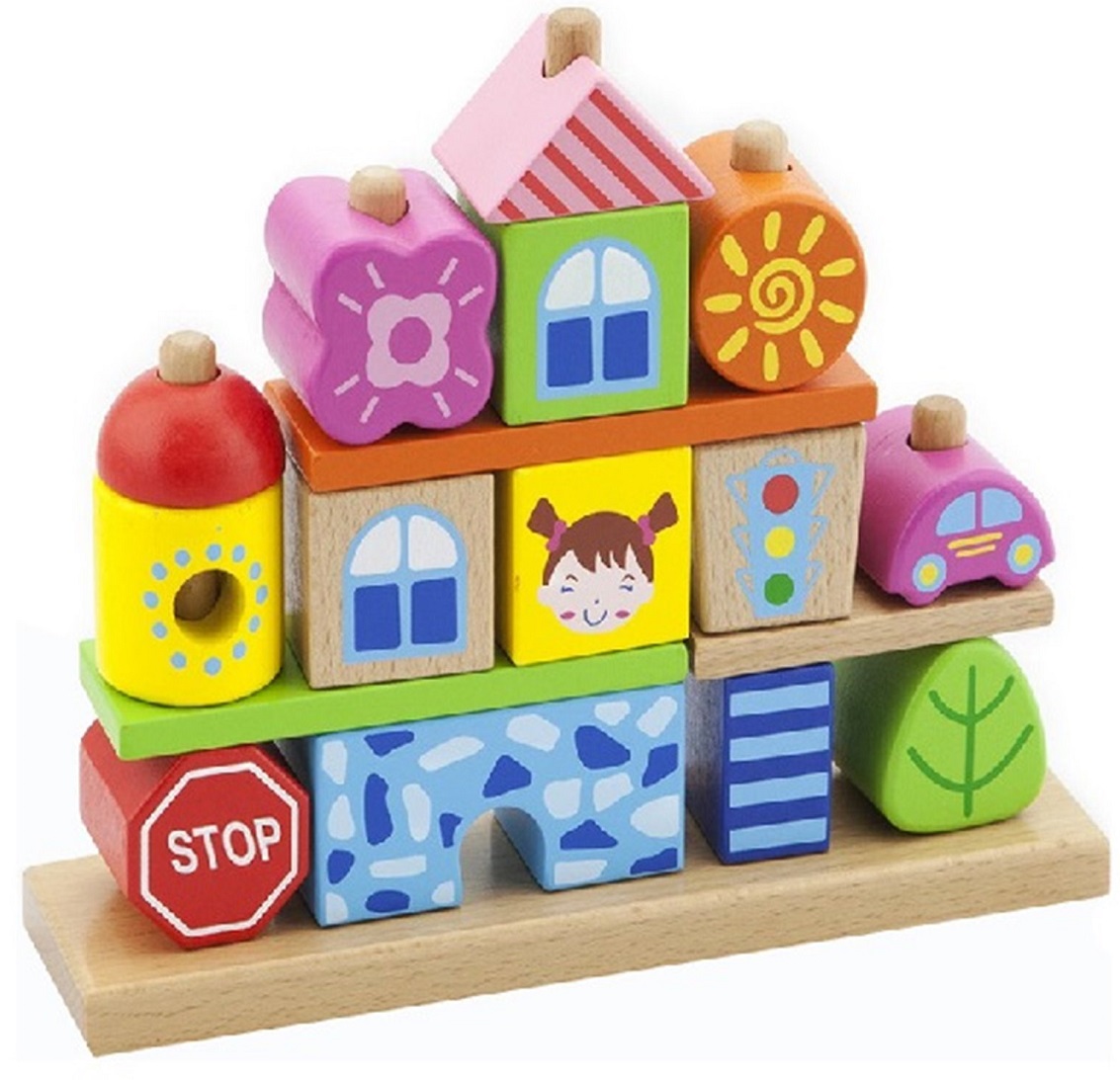קוביות השחלה עירוניות מעץ 17 חלקים ויגה