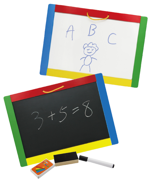 הלוח כולל צד לציור עם טוש, וצד לכתיבה עם גיר