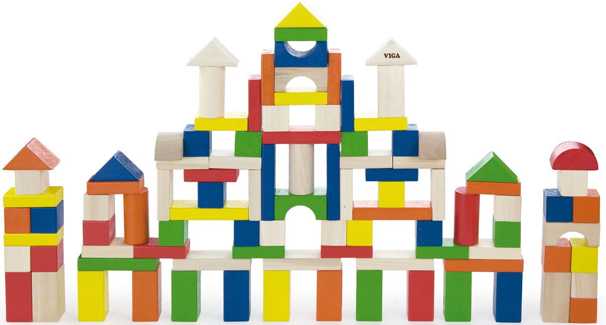 דלי 100 קוביות בנייה מעץ מלא מבית ויגה