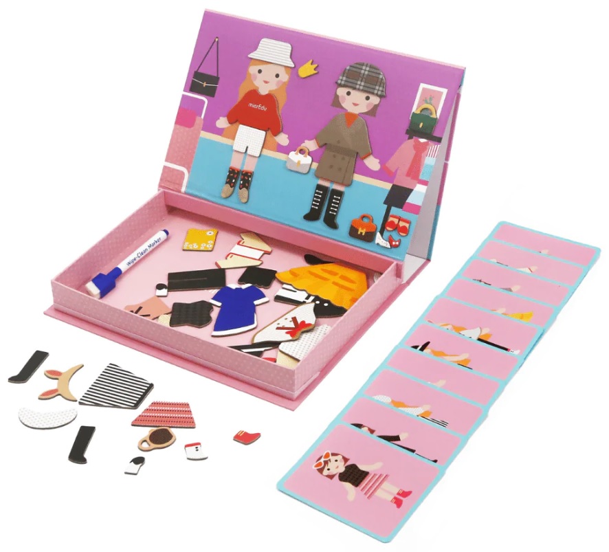 מארז יצירה במגנטים 50 חלקים, 10 כרטיסיות ומארקר מחיק - מתלבשים mierEdu