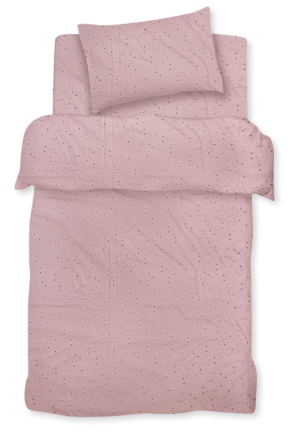 סט 3 חלקים למיטת מעבר 100% כותנה ג'רסי - ורוד נקודות שחורות צחית