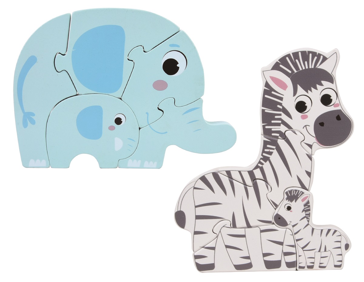 זוג פאזלי הרכבה מעץ 5 חלקים 2X הורים וגורים - פיל וזברה פיט טויס
