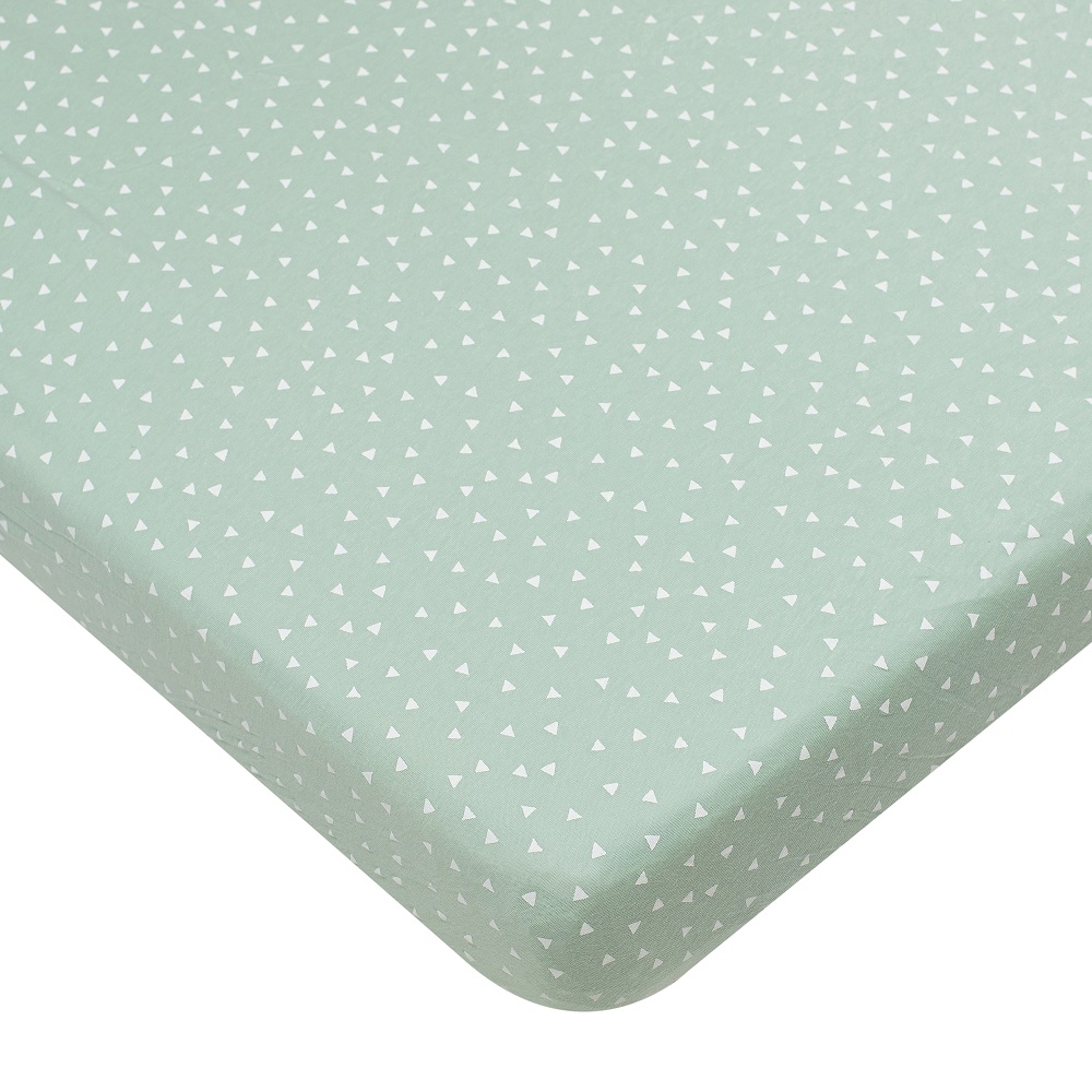 סדין ללול תינוק 100% כותנה טריקו - ירוק משולשים צחית