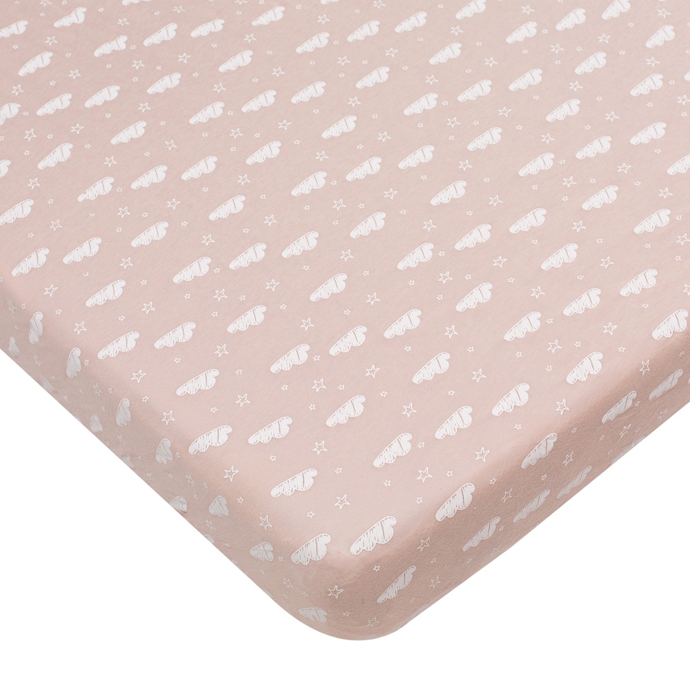 סדין מעוצב ללול תינוק / מיטת מטר 100% כותנה טריקו - ורוד עננים צחית