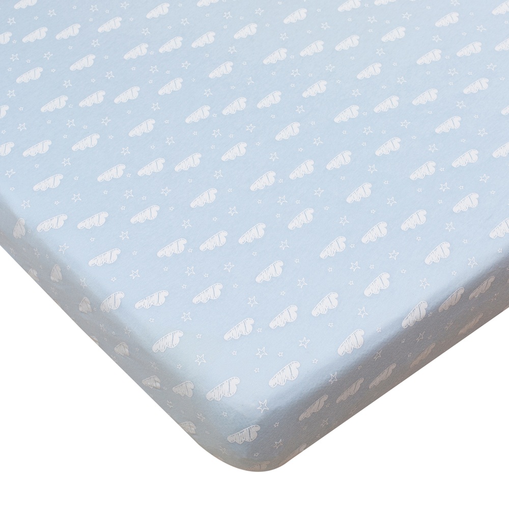 סדין מעוצב ללול תינוק / מיטת מטר 100% כותנה טריקו - תכלת עננים צחית