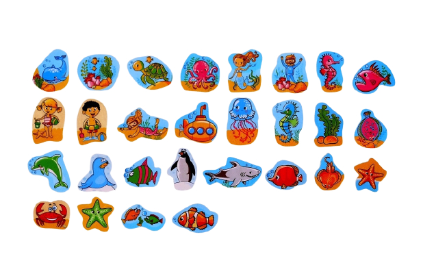 קופסאת מגנטים למשחק ע"ג לוח מגנטי או מקרר - עולם הים 28 חלקים פיט טויס