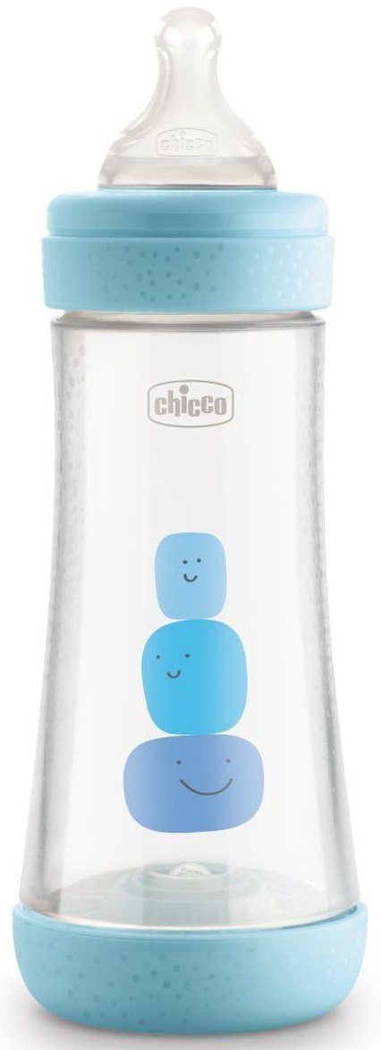 בקבוק לתינוק פרפקט 5 Perfect עם תחתית נושמת להפחתת גזים 300 מ"ל זרימה מהירה - תכלת צ'יקו