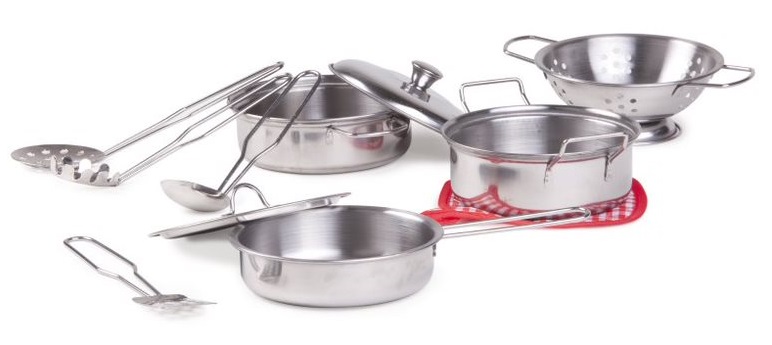 סט כלי מטבח ילדים ממתכת - סיר, מחבת, מסננת ועוד אביזרים למשחקי דימיון צעצועי מלניק