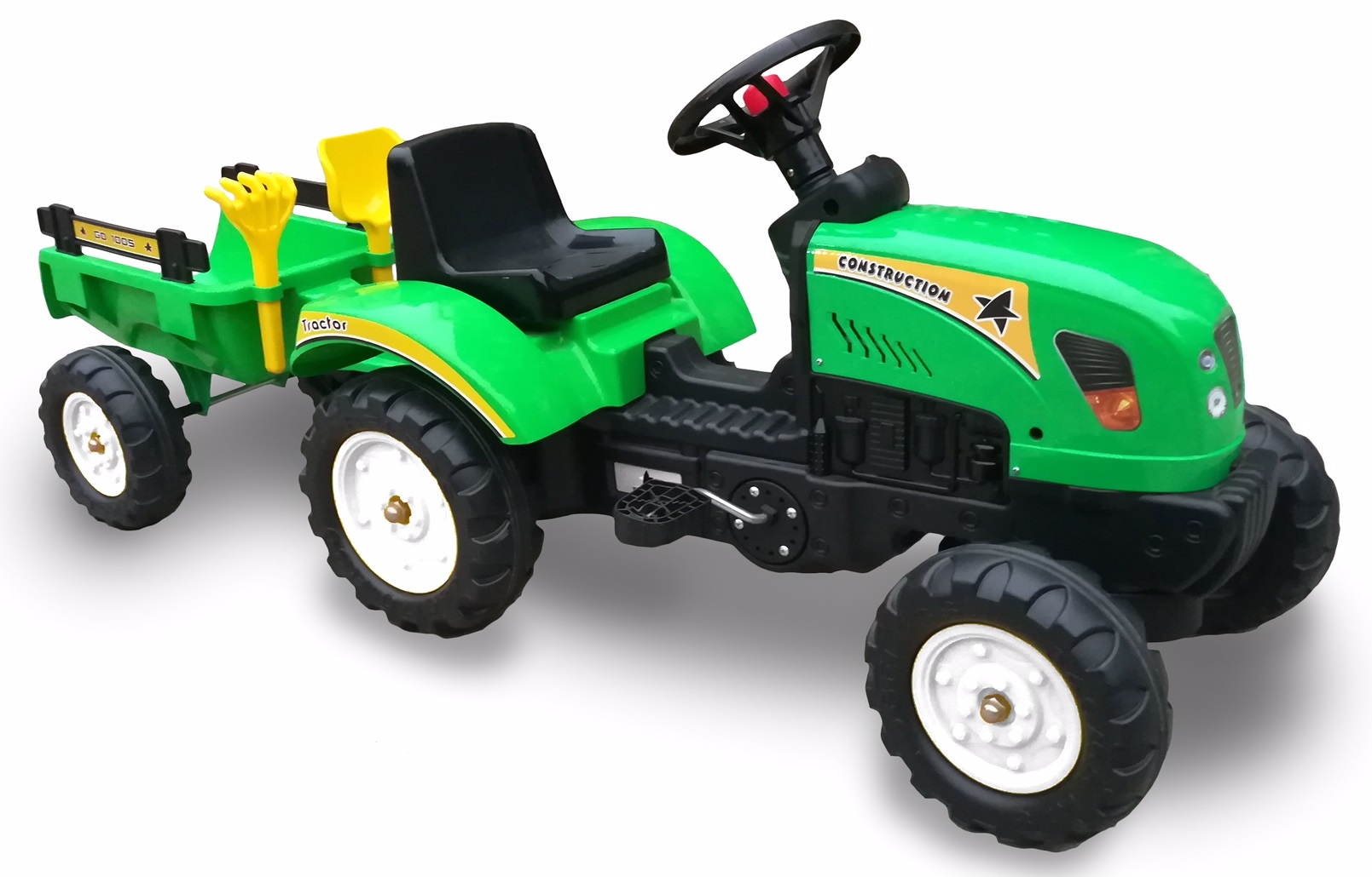 טרקטור פדלים לילדים עם עגלה מתחברת ו 2 כלי חפירה - ירוק Hajoj Connect