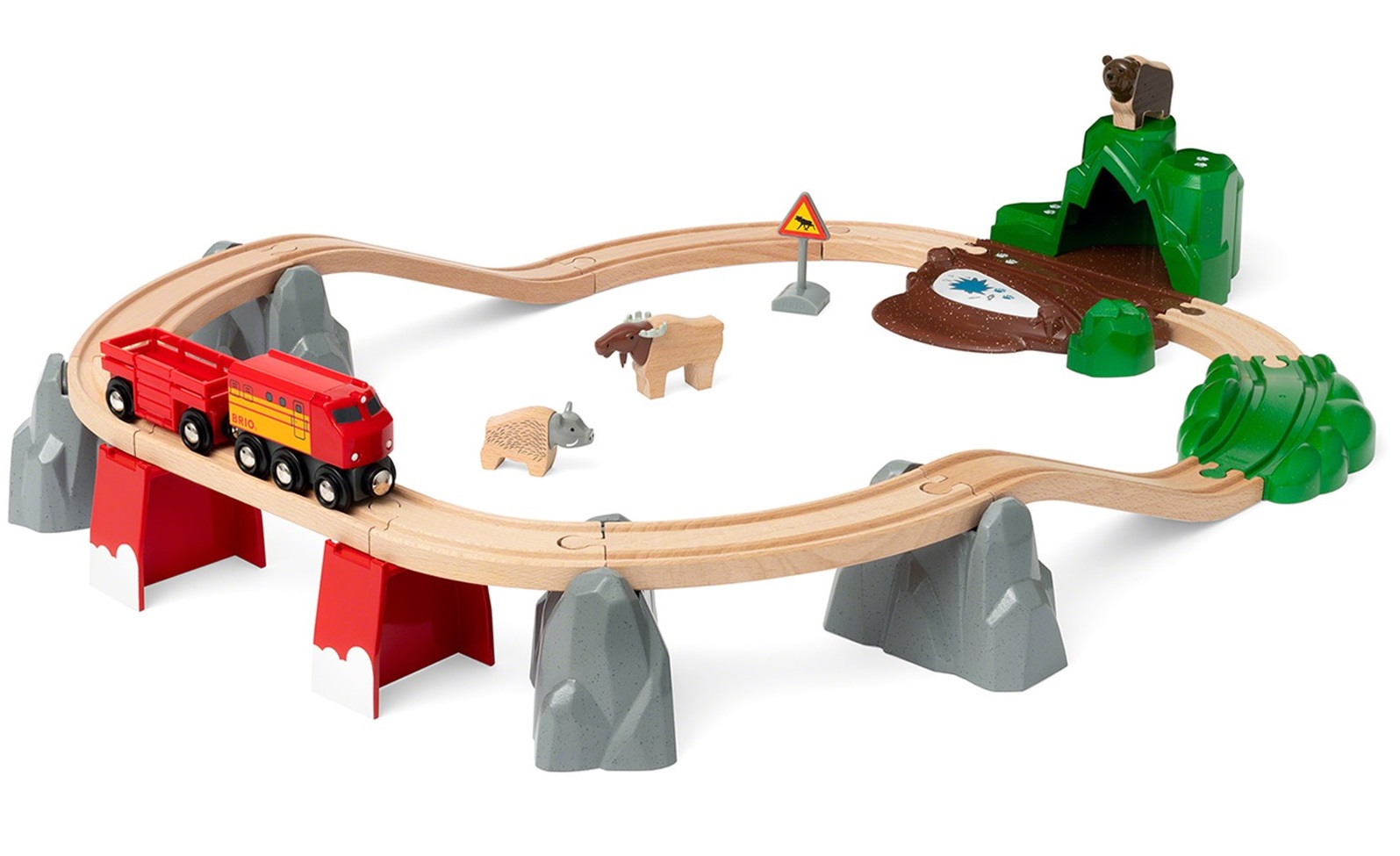 סט רכבת מסע מעגלית עם גשר ומנהרה + 3 חיות נורדיות 26 חלקים 33988 בריו BRIO