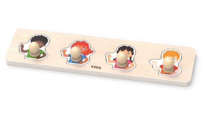 בראש כל חלק פאזל כפתור עץ המאפשר הוצאה והכנסה בקלות ע"י הפעוט
