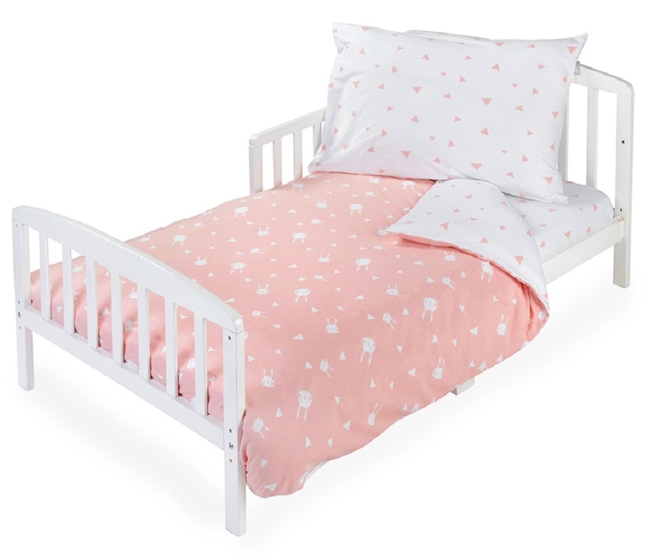 סט מצעים 3 חלקים למיטת תינוק/מעבר 100% כותנה פלנל - ארנבון ורוד לורה סוויסרה