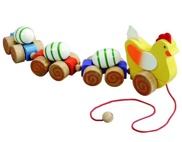 צעצוע משיכה לעידוד זחילה והליכה מעץ - התרנגולת והביצים mentari