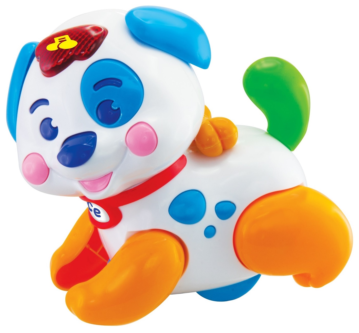 לחיצה על הכפתור בראשו של הכלבלב תשמיע מנגינון ותפעיל אור
