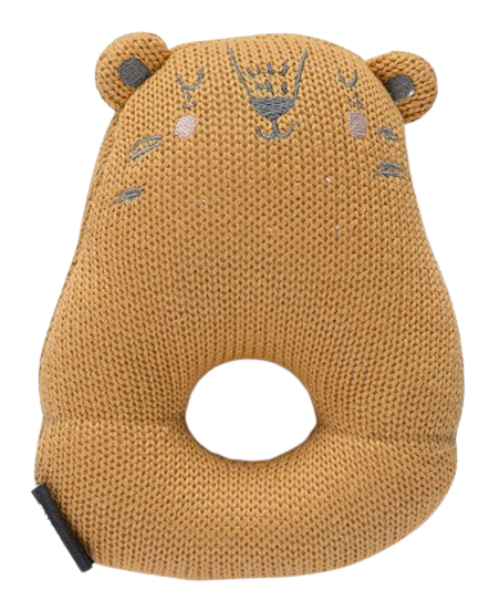 רעשן חיות סרוג עם חור אחיזה לקישוט ומשחק 100% כותנה - חרדל מיננה