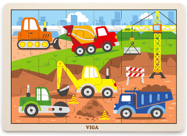 פאזל 24 חלקים מעץ עם מסגרת - רכבי עבודה ויגה