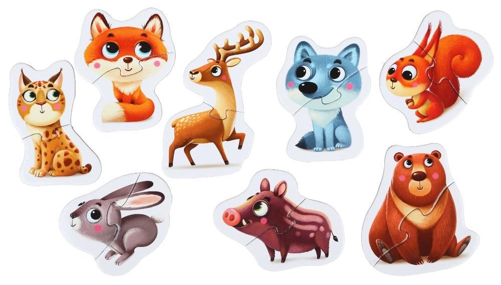 סט 8 פאזלים 2 חלקים למתחילים, עבים במיוחד בקופסת קרטון רב פעמית - חיות היער פזליקה