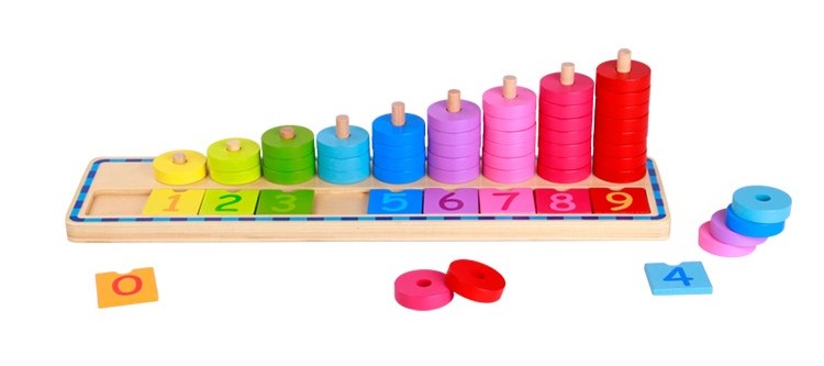 משחק ערימת מטבעות צבעוניים מעץ עם ספרות ללימוד מספרים וצבעים Tooky Toy
