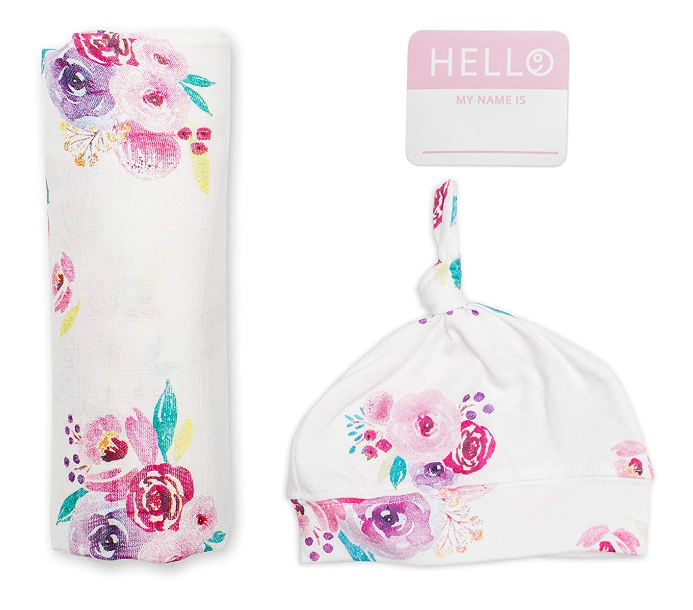 מארז Hello World - סט כובע, חיתול במבוק ותג שם - פרחוני לולו ג'ו