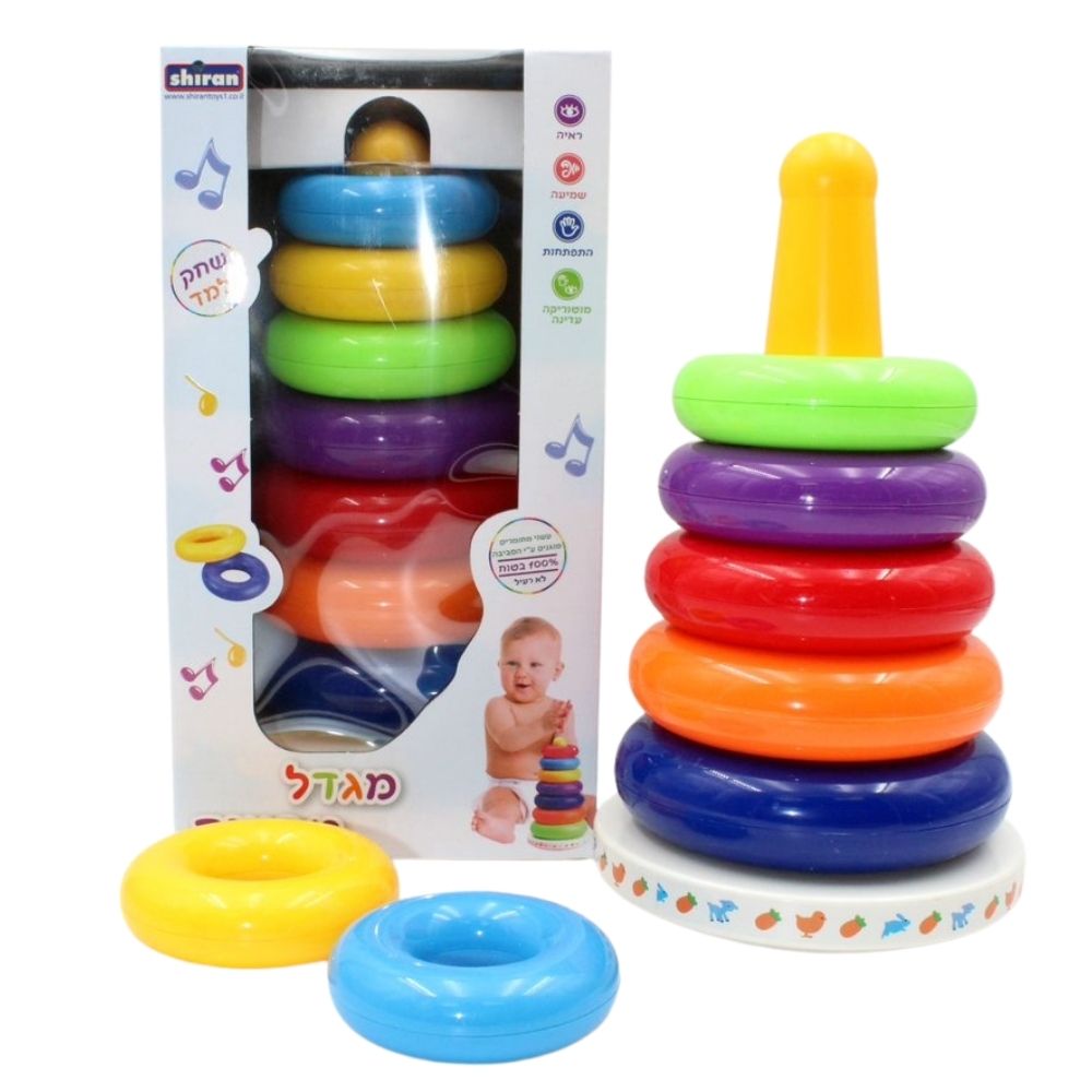 מגדל טבעות צבעוניות לתינוק עם רעשן מובנה לפעוטות מגילאי חצי שנה ומעלה צעצועי שירן